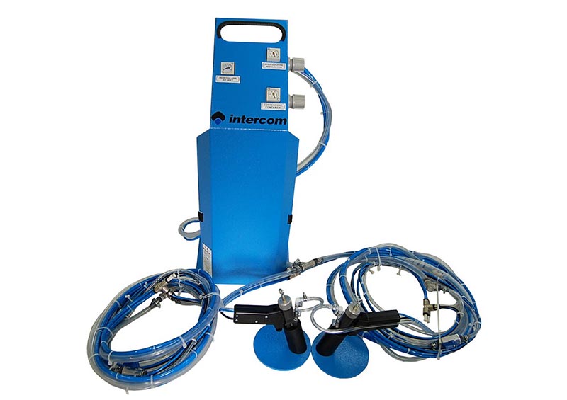 The spraying gun can perform spraying from a minimum of 3mm up to a maximum jet cone shape of 50 mm and it is fed by a 10 lt stainless steel tank treated with Teflon.